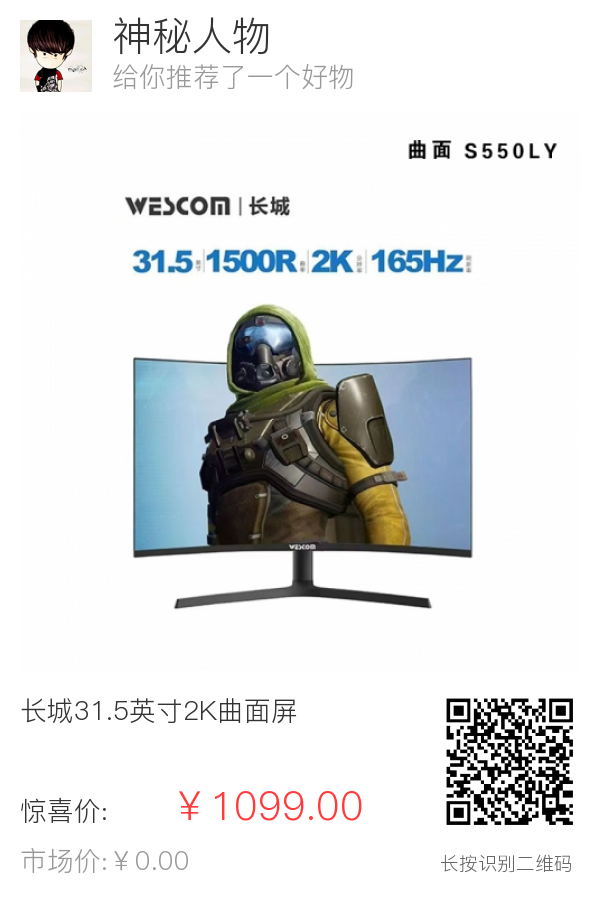 长城31.5英寸2K曲面屏