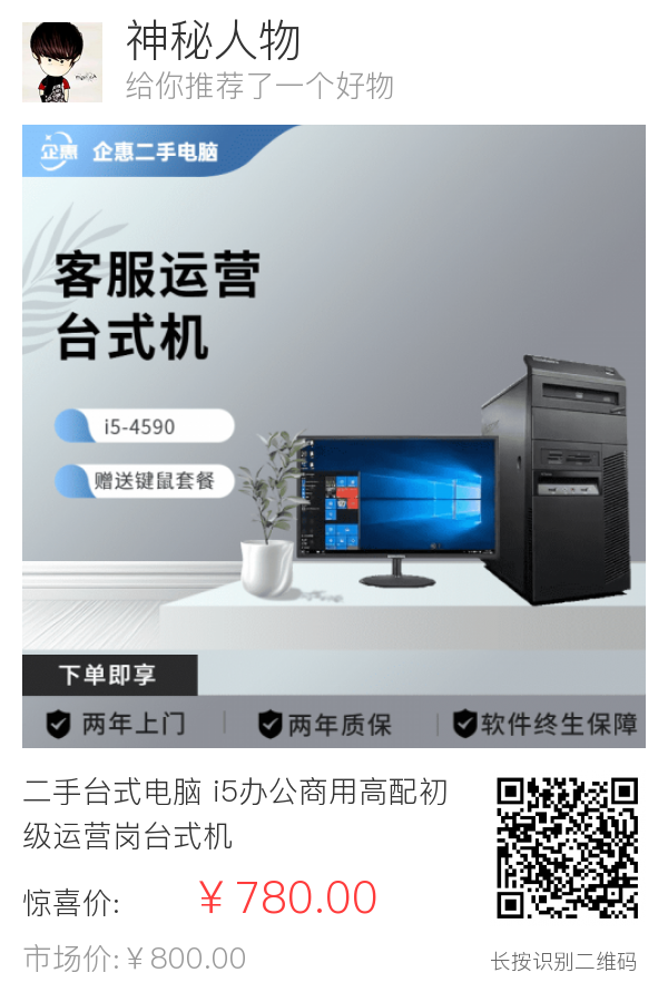 二手台式电脑 i5办公商用高配初级运营岗台式机